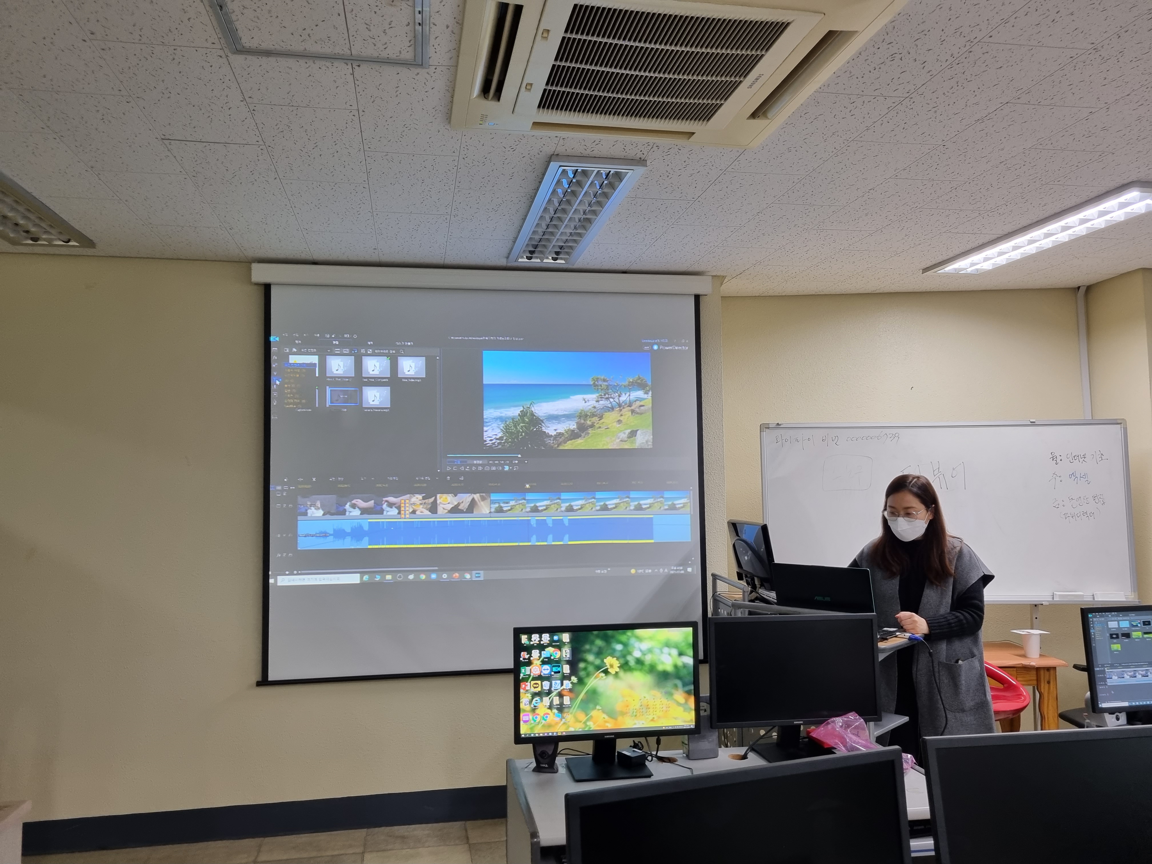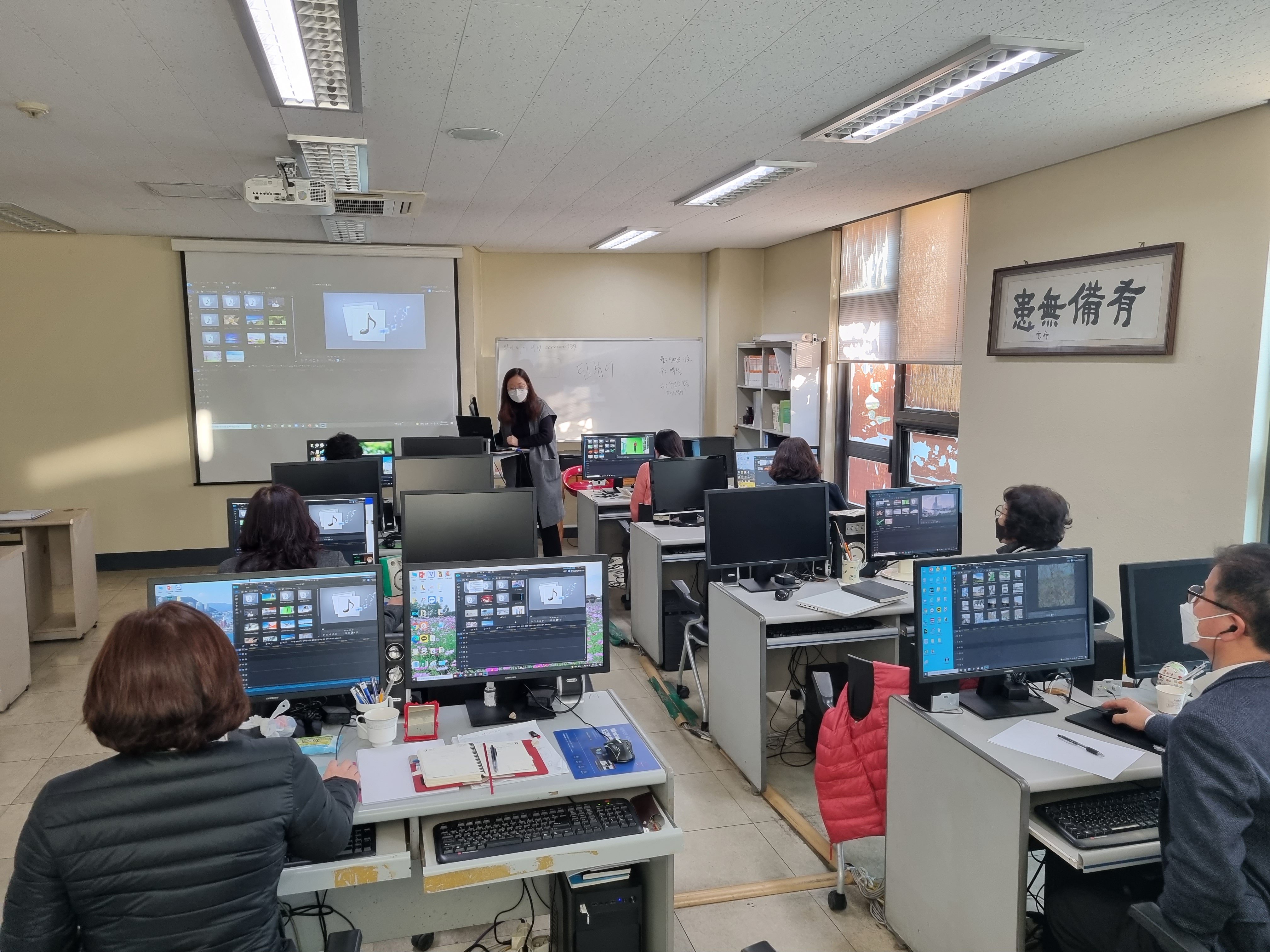 12월 8일(수) 13시부터 18시까지 5시간 동안 서구자원봉사센터 3층 컴퓨터교육실에서 교육강사단 심화교육을 진행했습니다. 이번 교육강사단 심화교육은 「강의자료 향상을 위한 디지털 역량강화 교육」으로 첫번째 시간은 저작권에 안전한 프리소스를 활용하고 유용한 PPT 활용팁을 배우는 디지털 컨텐츠 활용교육, 두번째 시간은 파워디렉터 프로그램을 활용한 영상편집교육으로 이루어졌습니다.