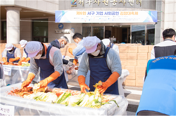 올해로 6회째를 맞이하는 기업사회공헌 김장 대축제는 개별적으로 추진하던 김장나눔 행사를 한 날 진행하여 수혜가구의 중복지원 문제를 해결하고 지역의 어려운 이웃에게 더 좋은 재료의 김장김치를 지원하기 위한 특색 있는 인천서구의 기업사회공헌 사업이다.